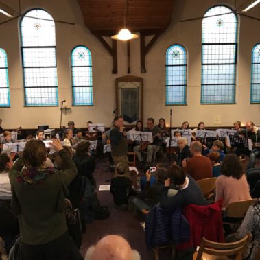 Helemaal alleen met of zonder zang, met een vriend/vriendin en/of familie-lid of mede-muzikant, maakt niet uit. Alles ter bevordering van het spelen voor anderen. Wel met koffie, thee en wat lekkers, onder een gemoedelijke sfeer!